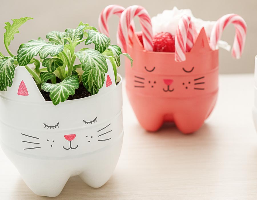 Potrebujete posodico za začimbe, lonček za rože ali majhen shranjevalni prostor? Iz plastenk lahko naredite prikupne živalske posodice — zajčke, miške, mucke. Otrokom bo všeč, če jih boste skupaj barvali in krasili.
