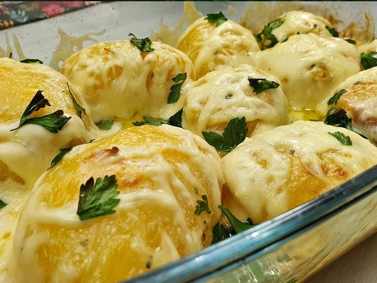 - Vrnemo v pečico za 5 minut, da se sir zapeče in krompir postane še bolj okusen.