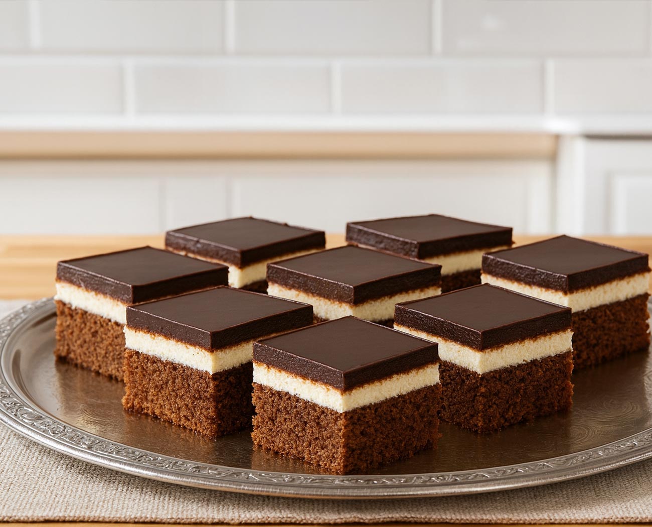 To je ena tistih sladic, ki očara že na prvi pogled – temen, sočen biskvit, nežna plast s kislo smetano in kokosom ter čokoladni preliv, ki vse poveže v popolno harmonijo okusov. Preprosto za pripravo, a vedno deluje razkošno in praznično.