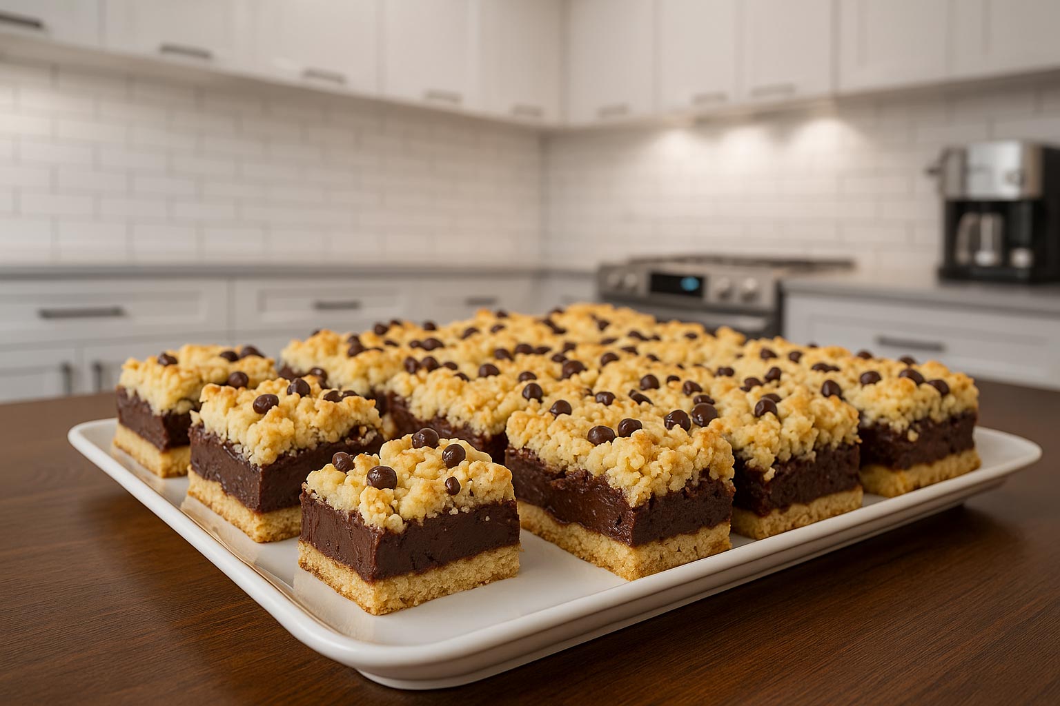 Trik, zaradi katerega je ta pita videti »slaščičarsko«, je naribano testo. Med peko ustvari nežen, drobljiv vrhnji sloj, ki se krasno ujame z mehko čokoladno kremo pod njim.