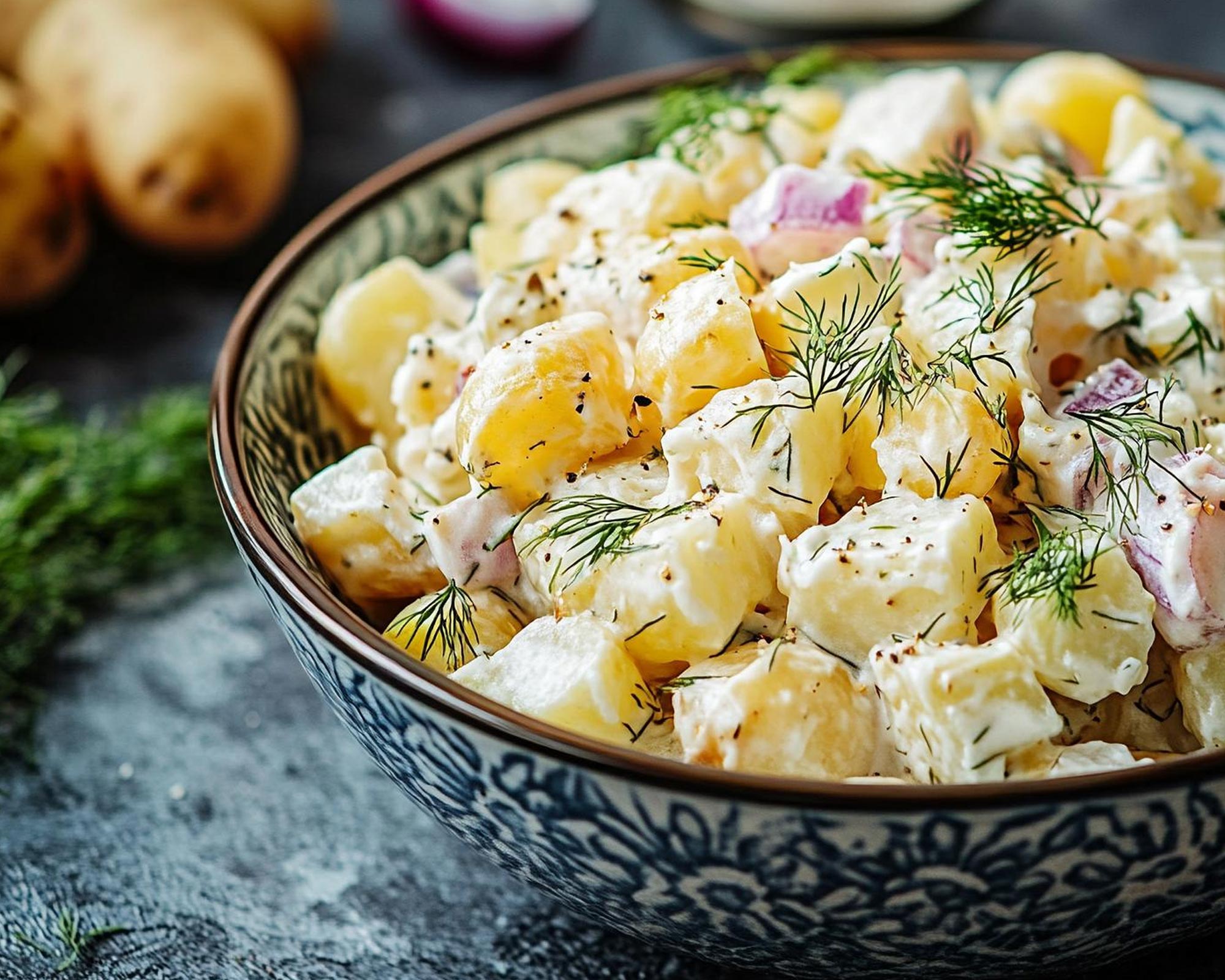 Krompirjeva solata je ena tistih jedi, ki vedno pride prav – kot priloga ali samostojen obrok. Ta različica je še posebej okusna, saj združuje toplino krompirja, svežino kumaric in kremast preliv, ki poskrbi za popolno ravnovesje okusov.
