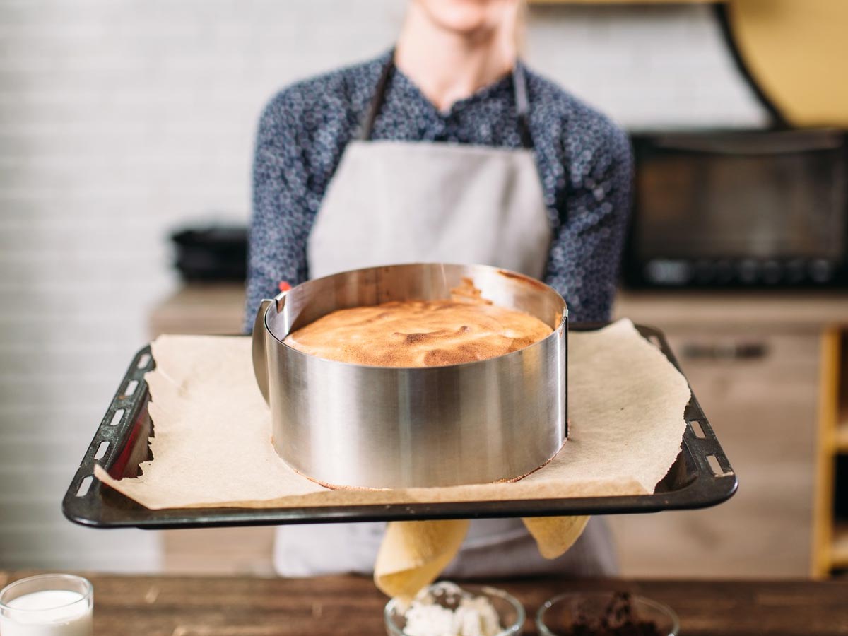 Kako veste, da je biskvit pečen? Ko se z rahlim pritiskom na sredino vrne v prvotno obliko, brez vdolbine, in če zobotrebec iz sredine pride ven suh (pri maslenih ali sadnih biskvitih pa lahko rahlo obarvan).