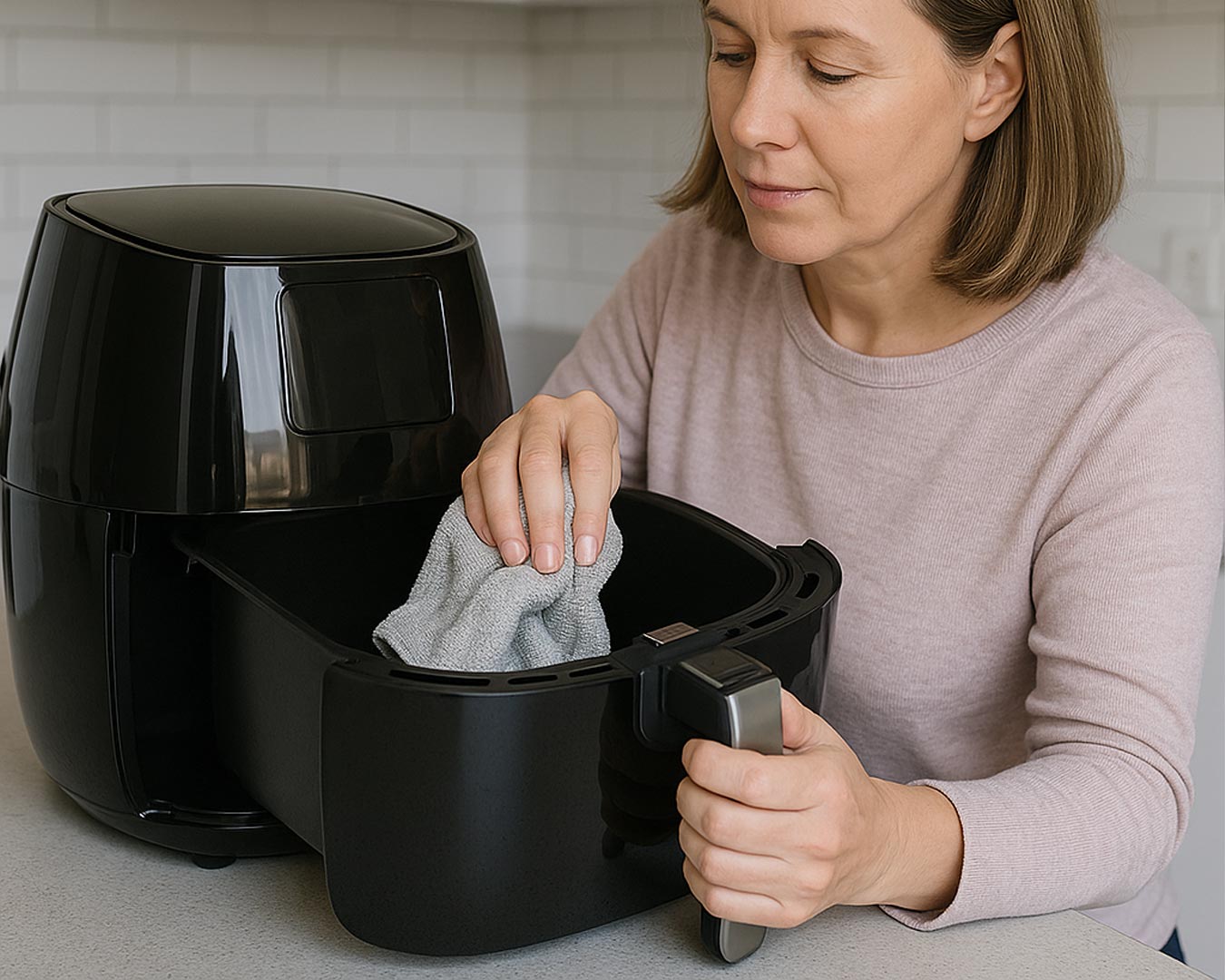 Cvrtnik na vroč zrak je izjemno priročen pripomoček, vendar se njegovo dobro delovanje začne in konča pri čistoči. Hitro brisanje po vsaki uporabi, malo tople vode in nežno čistilo – in vaš cvrtnik se vam bo zahvalil z dolgo življenjsko dobo, brez dima, brez neprijetnih vonjav in s popolnoma hrustljavimi rezultati vsak dan.