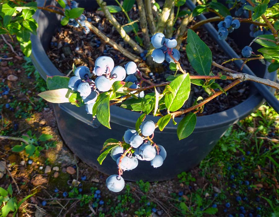 - Zalivanje: Borovnice imajo plitke korenine in potrebujejo redno zalivanje. V sušnih obdobjih zalivamo dvakrat na teden, da ostanejo tla vlažna, a ne prepojena.