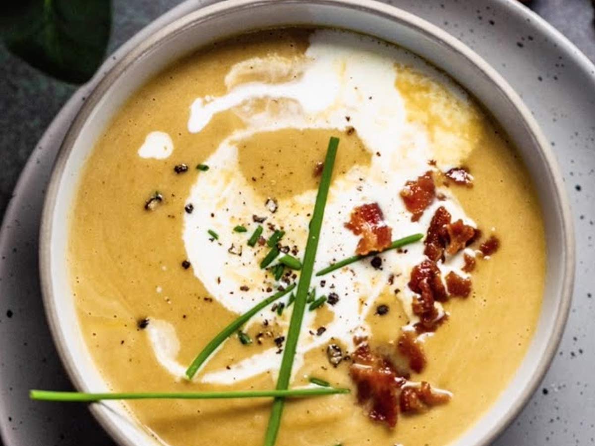 - Juho postrezite vročo, okrašeno z nadrobljeno slanino in po želji svežim drobnjakom.