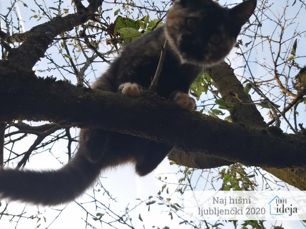Naša Muni rada je tuno, pleza po drevesih in na travniku lovi miši. Kupljenih igračk ne mara, napada samo vrečke in prazne škatle. Našli smo jo ob reki v travi, kjer naj bi po besedah mimoidočih tam bila že nekaj dni sama samo z lončkom vode. Najbrž jo je nekdo odvrgel tja. Vzeli smo jo s seboj domov, jo veterinarsko oskrbeli, zdaj pa nam že eno leto polepšuje življenje, dobila pa je še dve mačji sestrici.