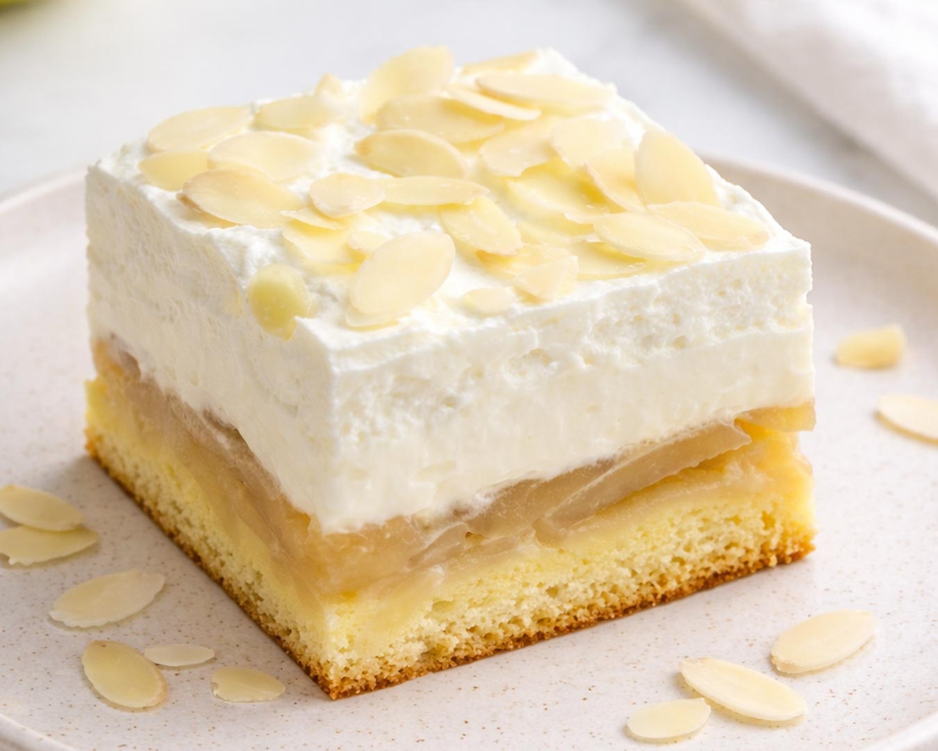 Obrnjen kolač z jabolki in vaniljevo kremo