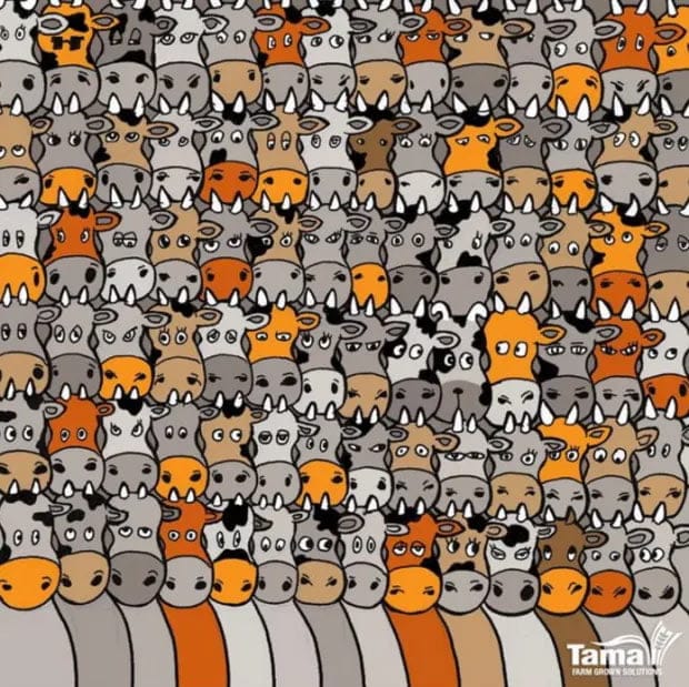 Pozorno preglejte vsako kravo na sliki in poskusite najti psa, ki se spretno skriva med njimi. Poglobite se in začnite iskati!