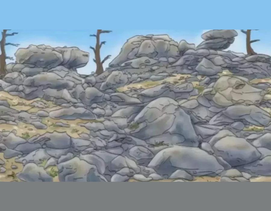 Na prvi pogled ilustracija prikazuje le skalnat teren z nekaj štori v ozadju. Marsikdo bi prisegel, da tam ni nič drugega. Pa vendar – s pozornim pogledom boste opazili skritega psa. Pes se popolnoma zlije z okolico.