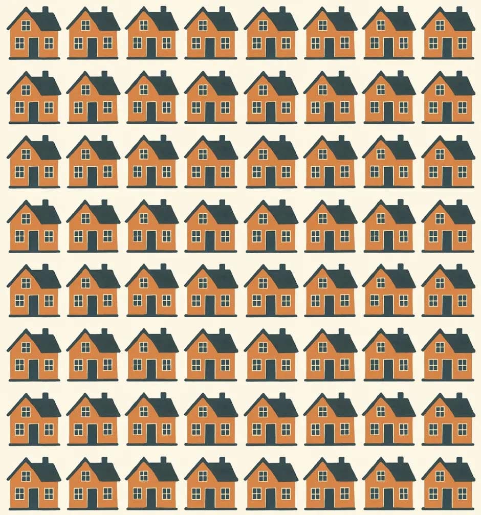 Pred vami je vzorec hišk, ki na prvi pogled delujejo popolnoma enako. Vaša naloga je preprosta: poiščite tisto eno hiško, ki se razlikuje – ne po barvi ali velikosti, temveč po detajlu.