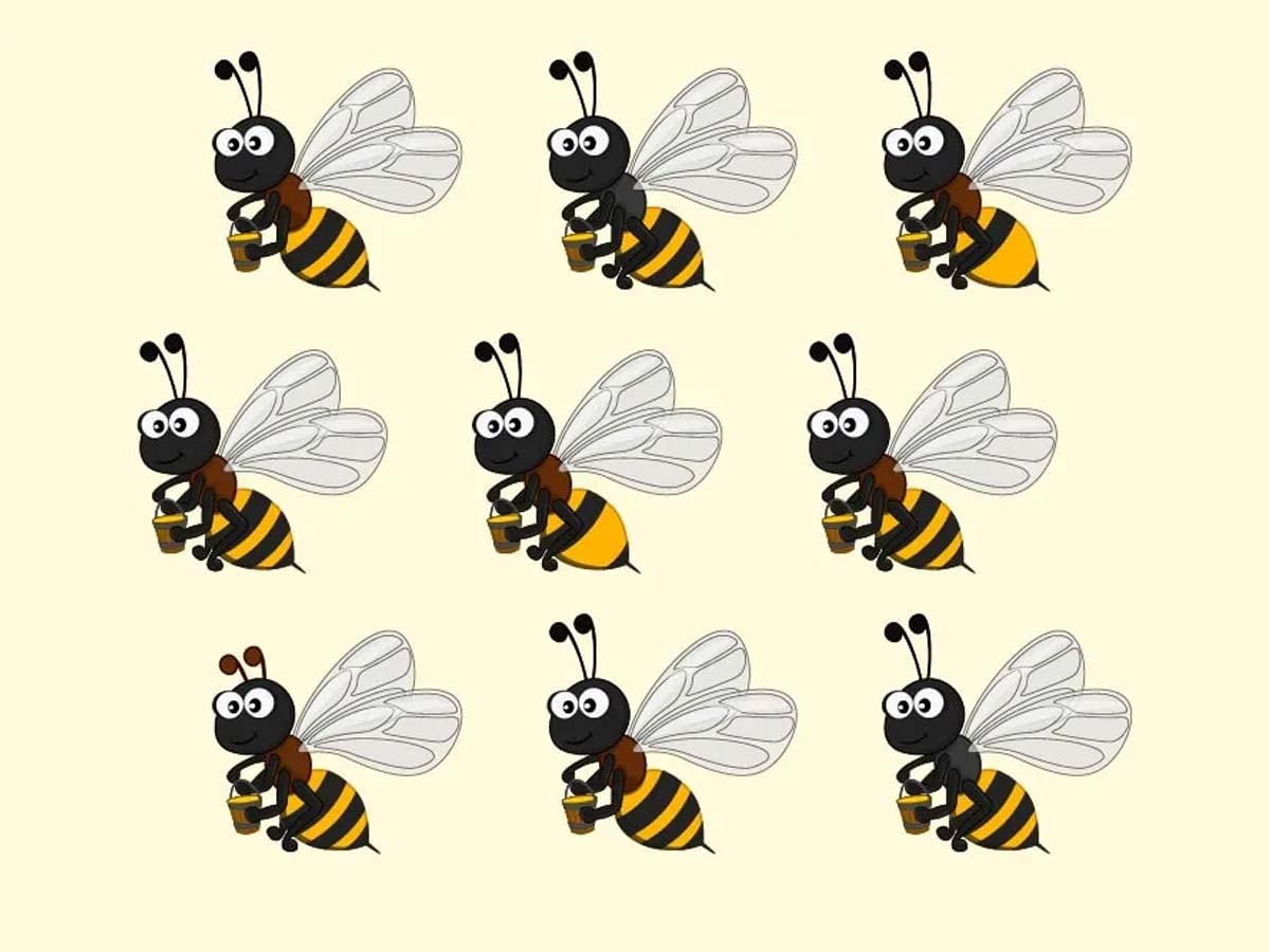 Pred vami je optična iluzija, vizualna uganka, na kateri je narisanih 9 čebelic. Vse so do potankosti enake, le ena se razlikuje od ostalih.