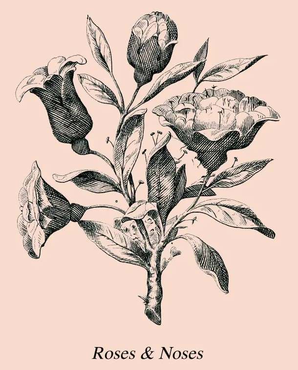 Na črno-beli risbi se zdi, da vidimo zgolj bogat šopek vrtnic. Toda pod plastmi cvetnih listov se skrivajo subtilne poteze — nosovi, oči, ustnice in obrisi obrazov, ki čakajo, da jih odkrijete.