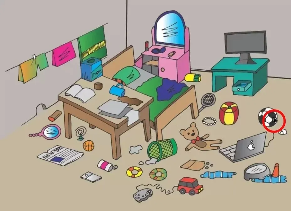Ta zanimiva optična iluzija vas izziva, da v razmetani sobi najdete pajka. Ta izziv preverja ostrino vašega vida in sposobnost opazovanja.
