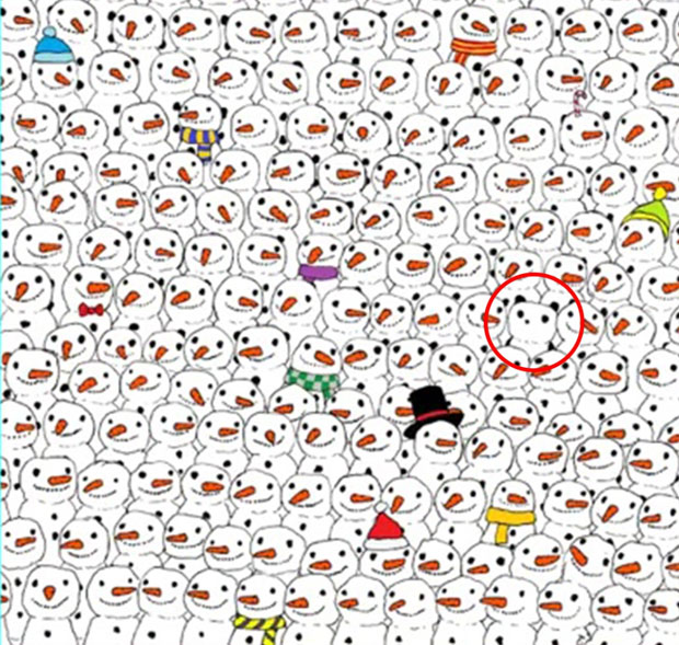 Optična iluzija pred vami je res zabavna. Predstavlja kopico snežakov, med katerimi se skriva panda. A le redki jo bodo opazili.