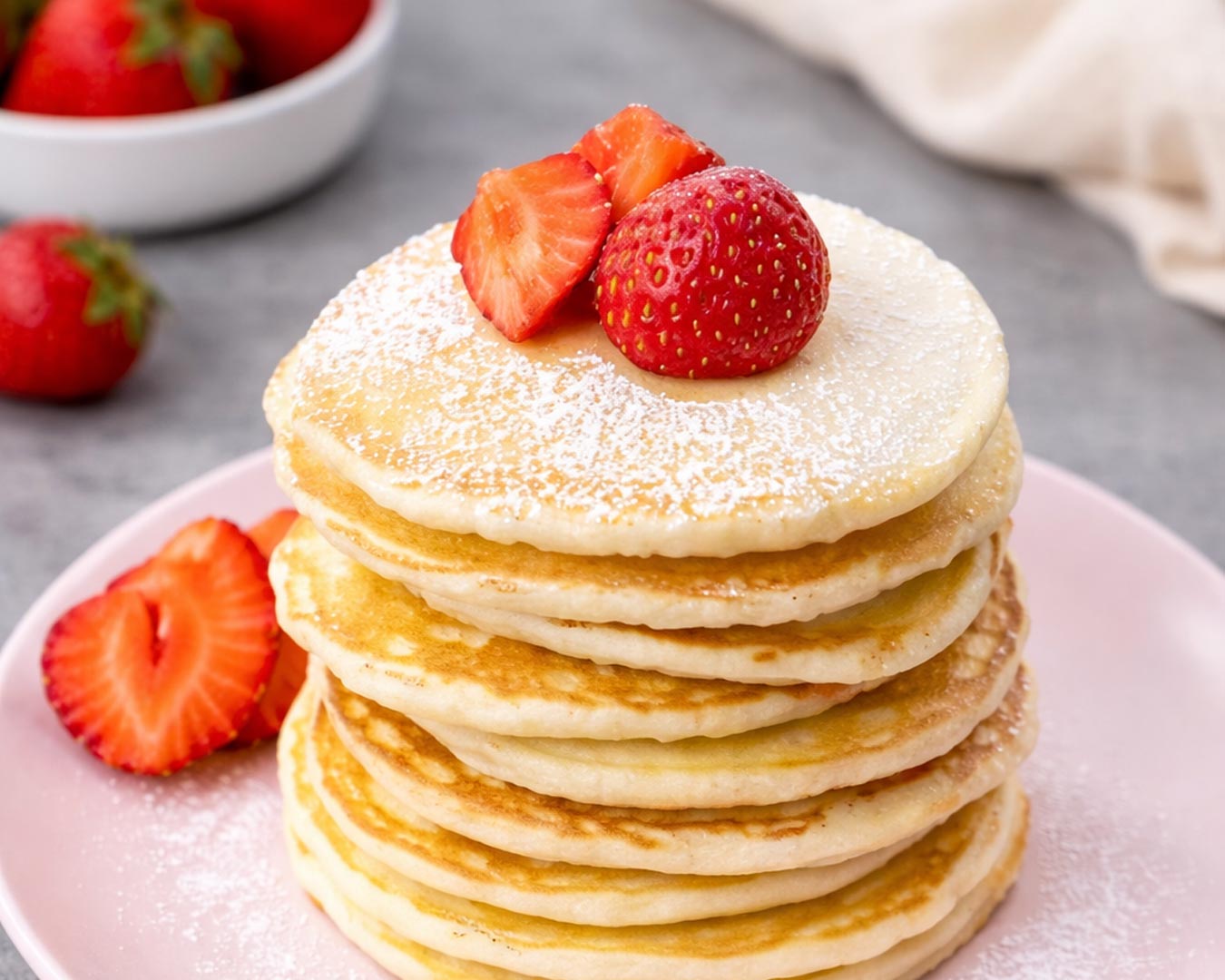Mehka tekstura in nežno sladek okus se popolno ujemata s svežimi jagodami in rahlim posipom sladkorja v prahu. Priprava je hitra in preprosta, rezultat pa preseneti s svojo zračnostjo.