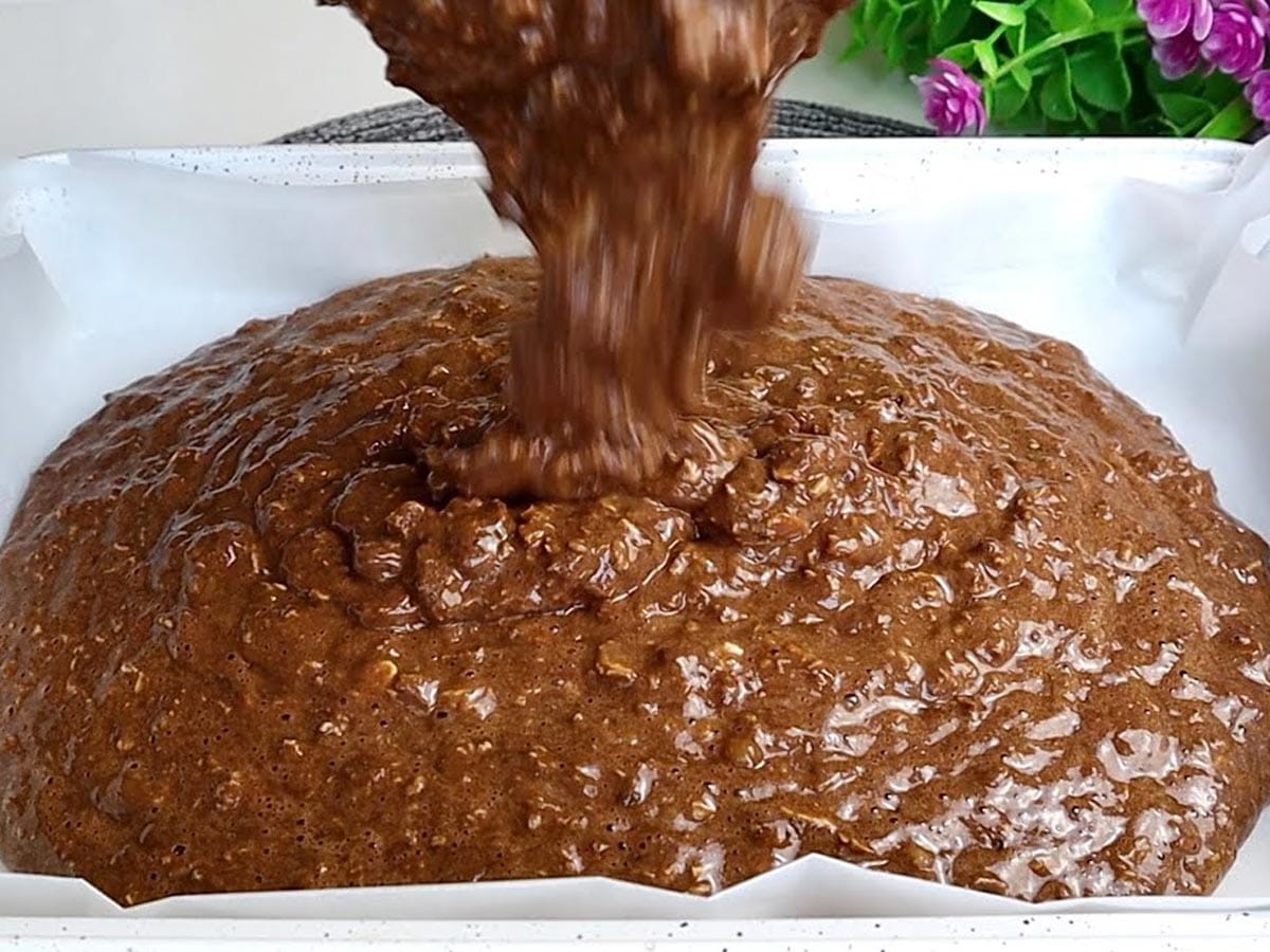 - Vključite suhe sestavine: Mokri zmesi postopoma dodajte namočene ovsene kosmiče, sladkor, kakav v prahu in pecilni prašek. Nežno mešajte, dokler se vse sestavine dobro ne povežejo in nastane gosta čokoladna masa.