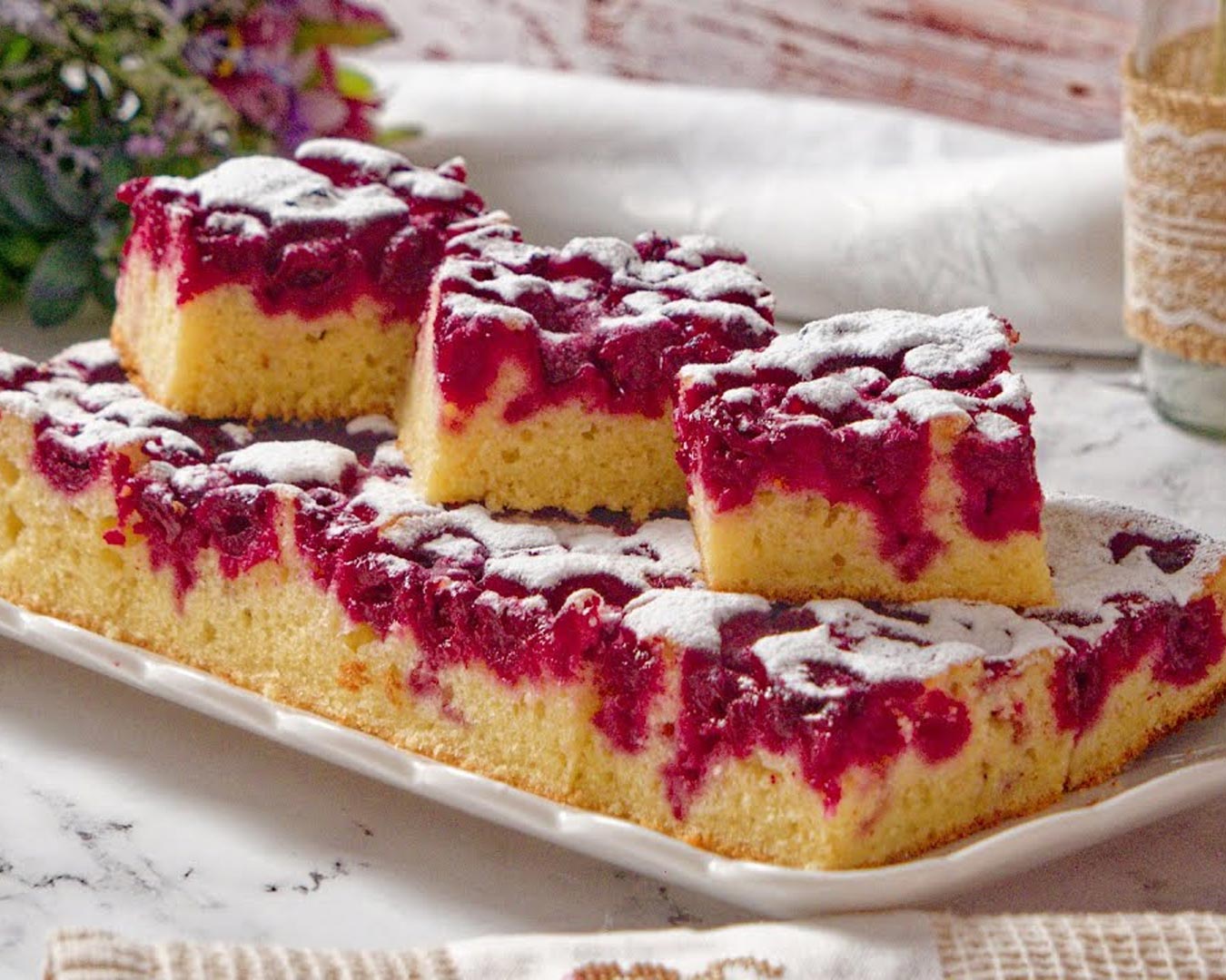 Ko dozorijo prve višnje, je skoraj samoumevno, da pristane to pecivo v pečici. In ko sezona mine, višnje vzamemo iz zamrzovalnika ter uživamo v njem tudi pozimi.