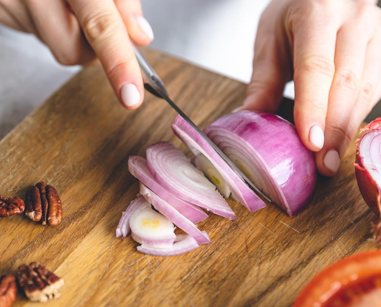 V nadaljevanju vam predstavljamo tri učinkovite metode, kako preprečiti solzenje med sekljanjem čebule, da bo priprava jedi bolj prijetna in brez nepotrebnega draženja.