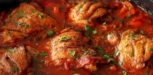 Ta recept združuje sočna piščančja stegna s slastno omako iz paradižnika, belega vina in aromatičnih začimb. Dodatek kaprov, inčuna in pršuta poskrbi za izjemno globino okusa. Jed je popolna za posebno večerjo ali nedeljsko kosilo, postrežena ob pire krompirju, rižu ali testeninah. Sestavine 6 velikih piščančjih stegen s kostjo in kožo (približno 1,2-1,4 kg) 2 … Nadaljujte z branjem Pripravite piščančja stegna na tak način in jed bo navdušila vse