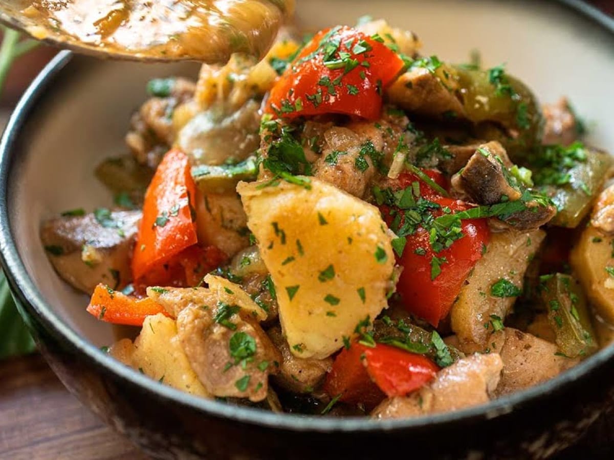 Popolna ideja za kosilo za hladne dni, kjer se sočnost piščanca in klobase prepleta s svežo zelenjavo in začimbam.