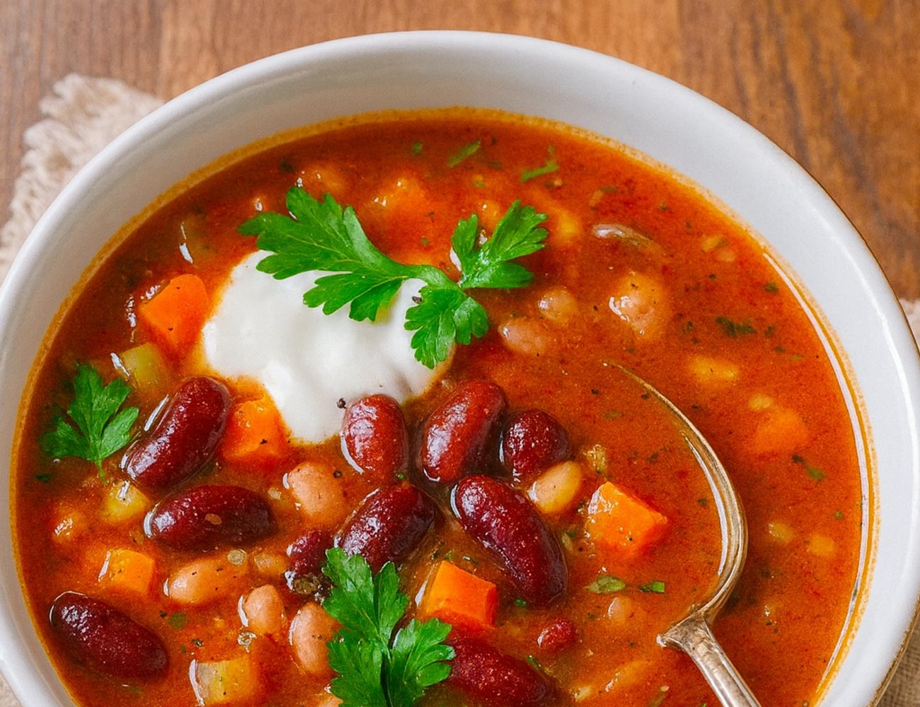 - Zaključek: Ko je fižol kuhan, po okusu dodajte sol in poper. Enolončnico servirajte v globoke krožnike, po vrhu dodajte žlico kisle smetane ter potresite s svežim peteršiljem ali kančkom čilija za piko na i.