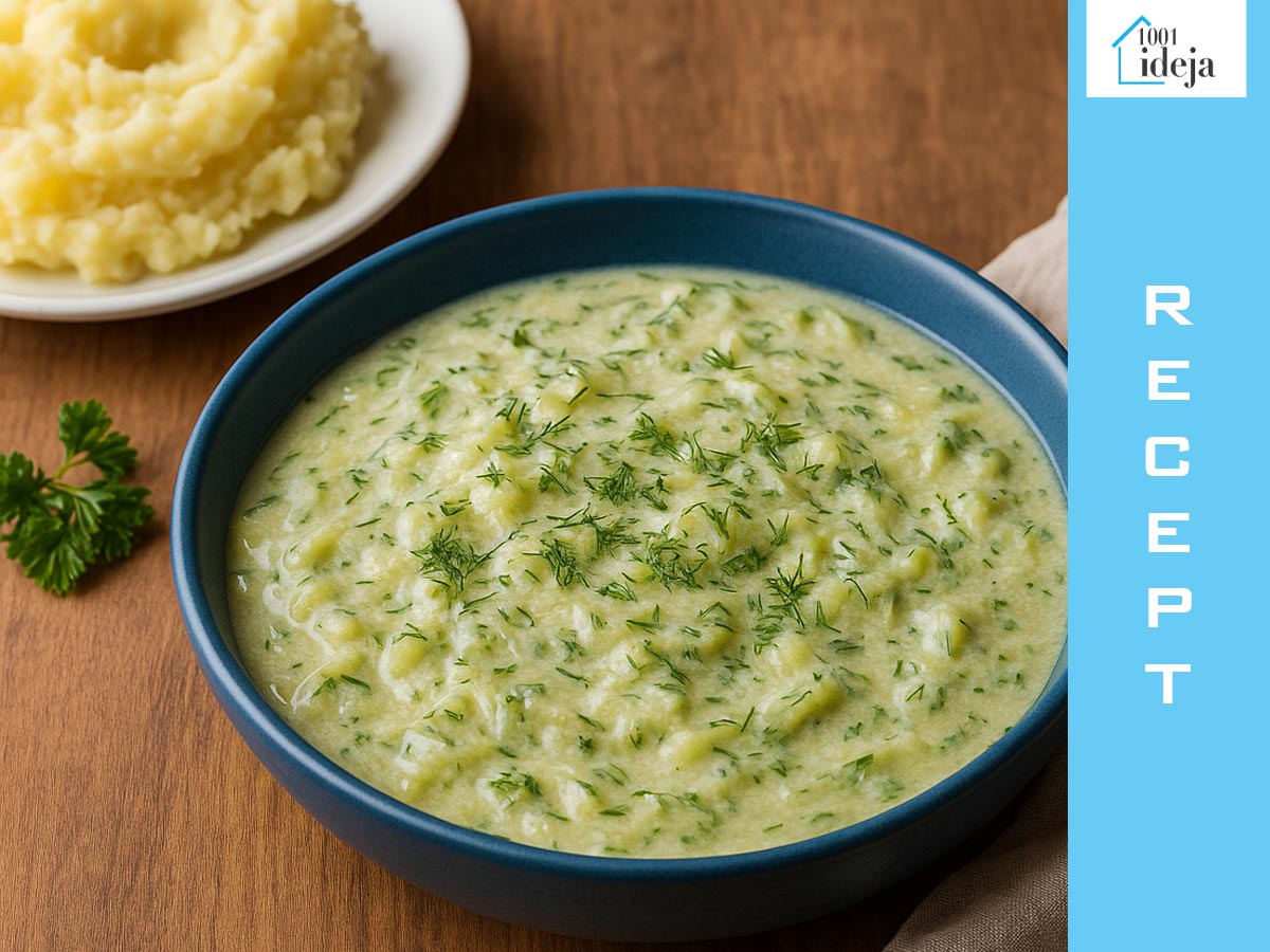 Mehka čebula, naribane kumare, mlečna osnova in osvežujoče začimbe poskrbijo za edinstveno in prijetno jed, ki jo lahko postrežete kot samostojen obrok. Kumarice v omaki jeste tople in zraven se lepo poda pire krompir.