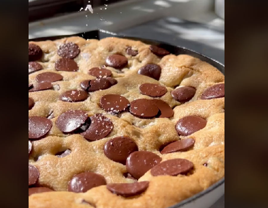 Ta bogata in hrustljava pita, pečena v litoželezni ponvi, vas bo navdušila z mehko čokoladno notranjostjo. Postrezite jo še toplo za dodatno navdušenje.