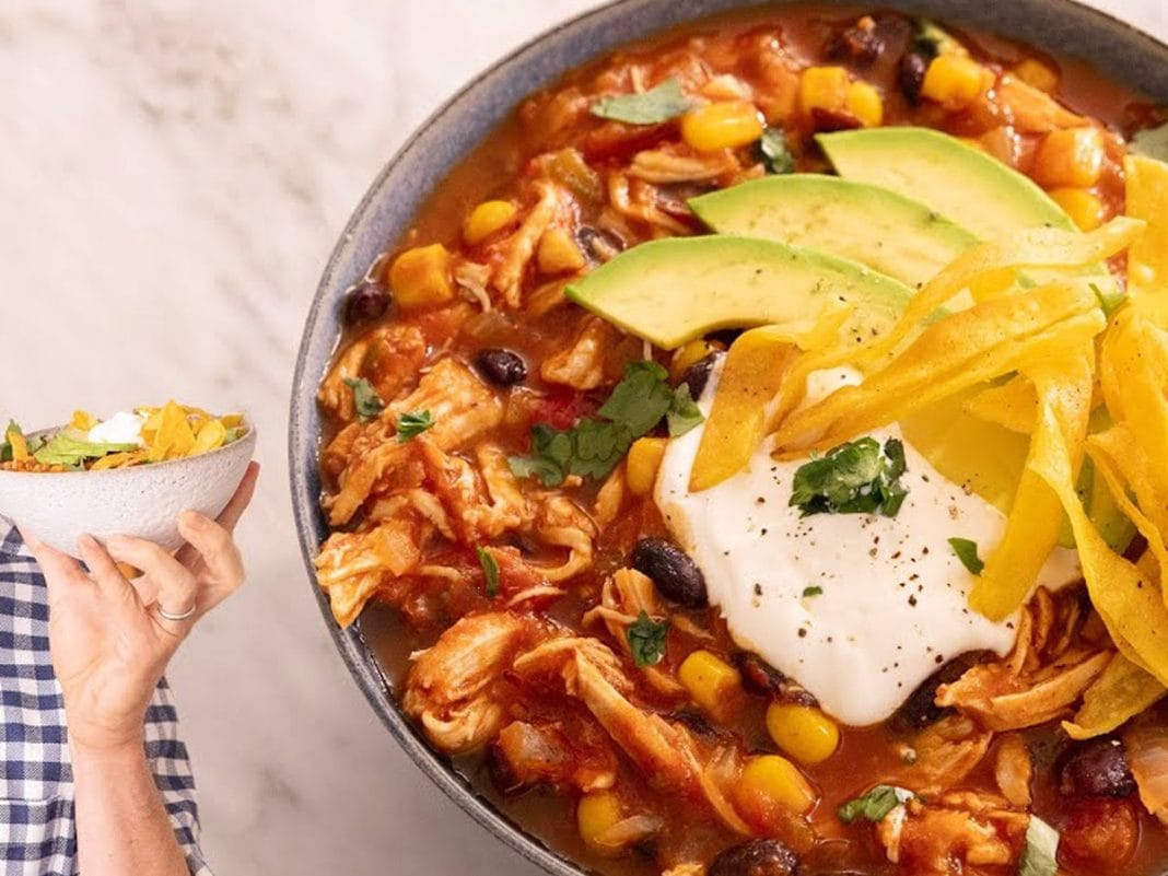 Ta okusna piščančja enolončnica s tortiljo je popoln obrok med tednom. Je polna okusa, krepka in nasitna in hitro pripravljena.