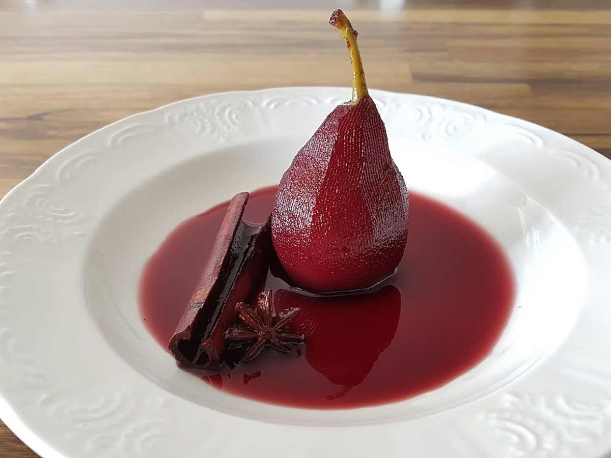To preprosto, a elegantno sladico z aromatičnimi začimbami lahko postrežete kot vrhunec praznične večerje. Kuhane hruške so čudovito prepojene z vonjem po cimetu, zvezdastem janežu in nageljnovih žbicah.