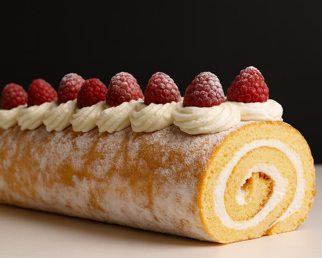 Vanilijeva rolada je znana po svoji nežni in zračni strukturi, ki jo dosežemo s pravilnim ločevanjem jajc in skrbnim vmešavanjem beljakov. Sveža smetana poskrbi za kremast, a ne pretežak nadev, maline pa dodajo popoln kontrast – rahlo kislost in svežino.