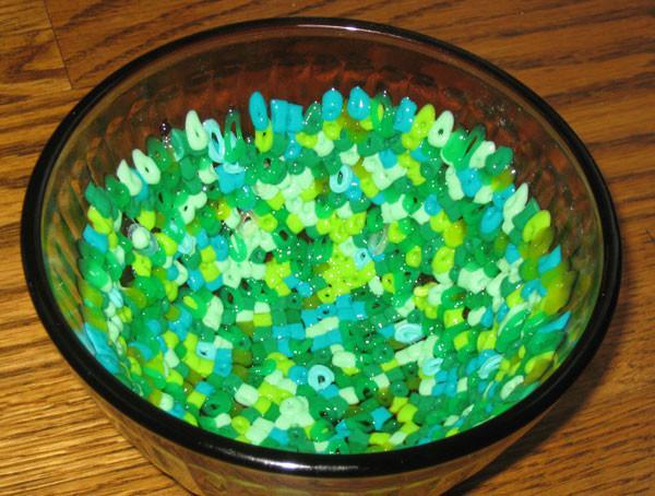 Vse, kar potrebujete, je sprej za kuhanje, plastične koralde in posodico, in ustvarite sli lahko svojo ljubko pisano skodelico.