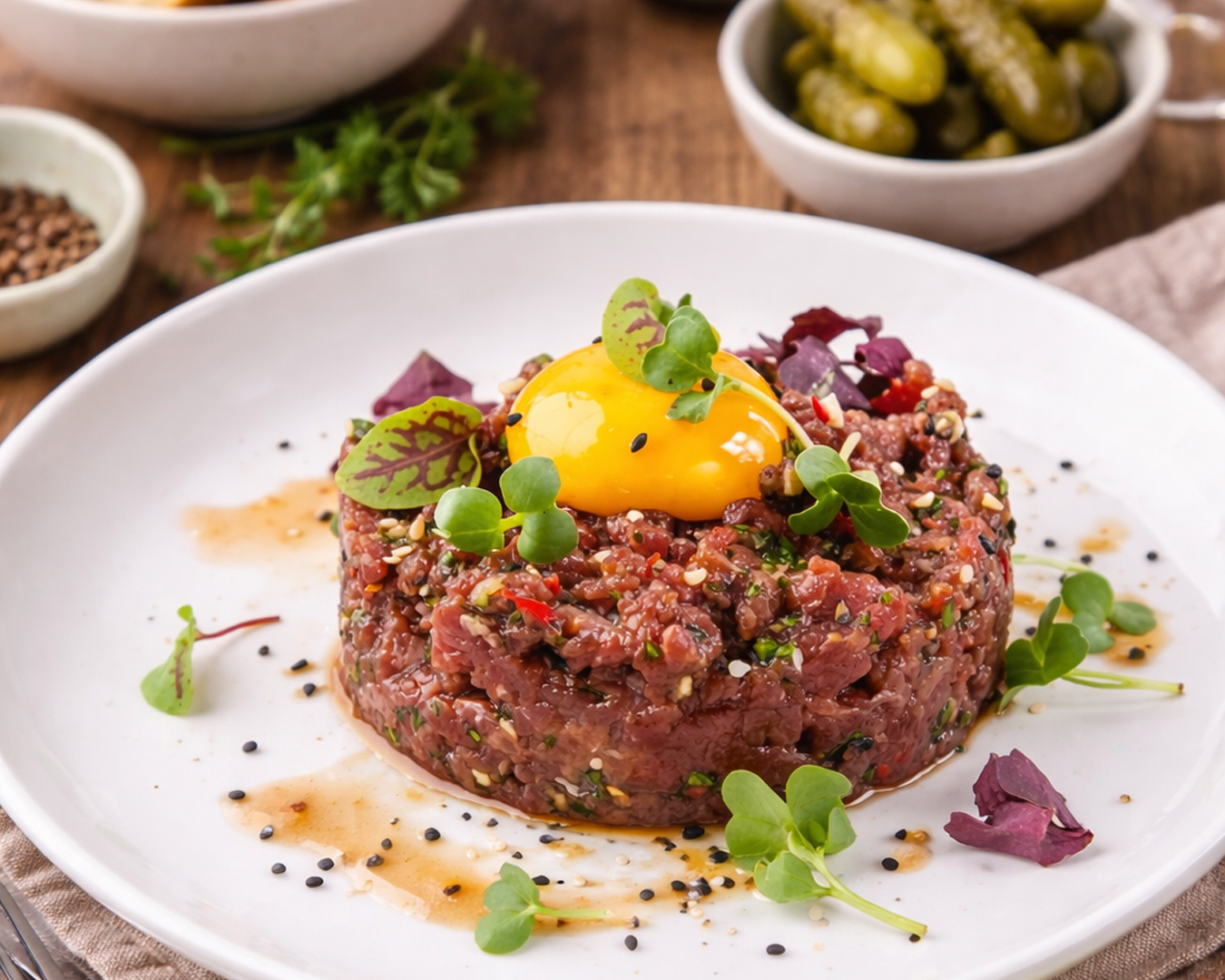 Tatarski biftek je klasika praznične mize, brez katere si božične ali silvestrske pogostitve skoraj ne predstavljamo. Maslo, popečeni kruhki in bogat, aromatičen biftek ustvarijo popolno kombinacijo. Čeprav ga lahko kupimo že pripravljenega, je doma narejen vedno najboljši – predvsem zato, ker lahko okus prilagodite sebi in uporabite le tiste sestavine, ki jih imate najraje.