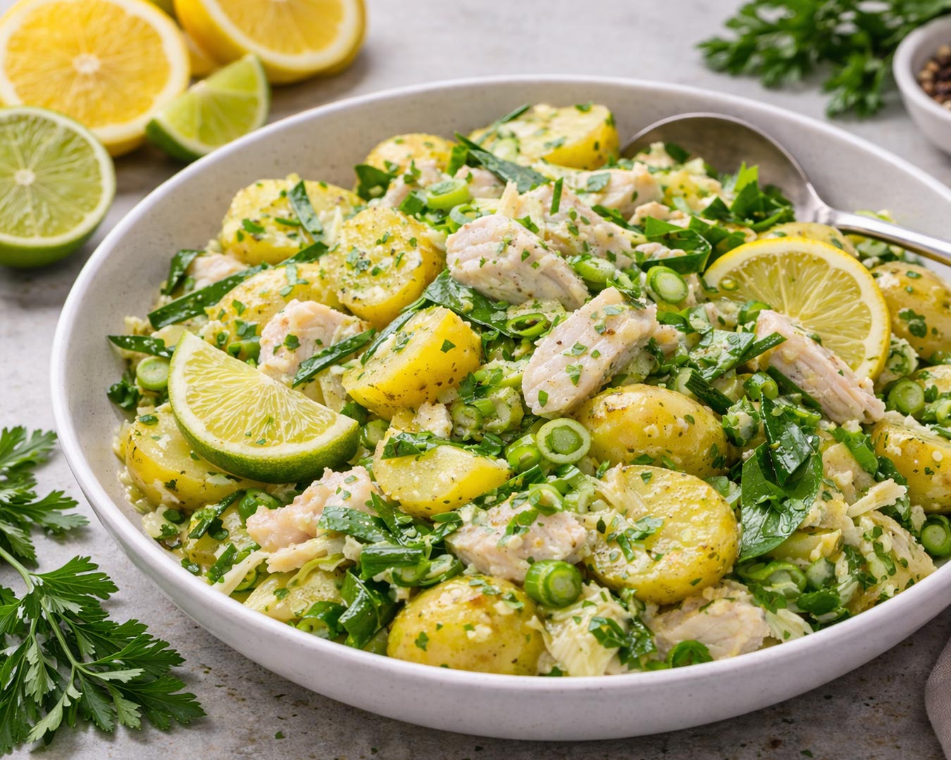 Ko narava ozeleni in se v naravi pojavi čemaž, je to pravi trenutek za lahkotne, a nasitne jedi. Ta spomladanska solata združuje mehak krompir, nežnega osliča in aromatičen čemaž v svežo, citrusno osveženo kombinacijo. Idealna je za kosilo sredi tedna ali kot lahka večerja.