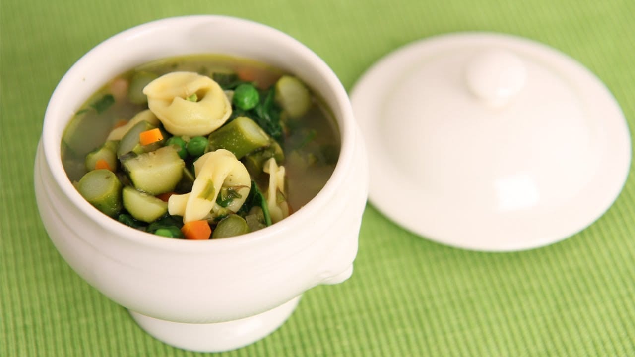 Ta sveža in lahka zelenjavna mineštra s tortelini, šparglji in pestom je polna okusov ter popolna za hiter obrok. Zmešajte vse sveže sestavine in uživajte v hranljivi, a preprosti jedi, ki je kot nalašč za hitro kosilo ali večerjo.