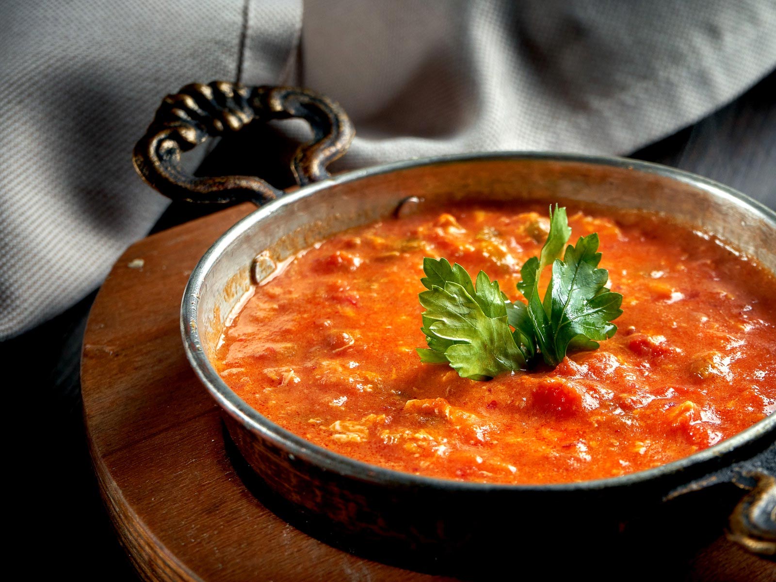 - Kislo smetano gladko zmešamo s koruznim škrobom in jo vmešamo v omako. Paprikaš na nizkem ognju kuhamo še 5 minut – omaka mora postati gosta in svilnata, nikakor pa ne sme zavreti.