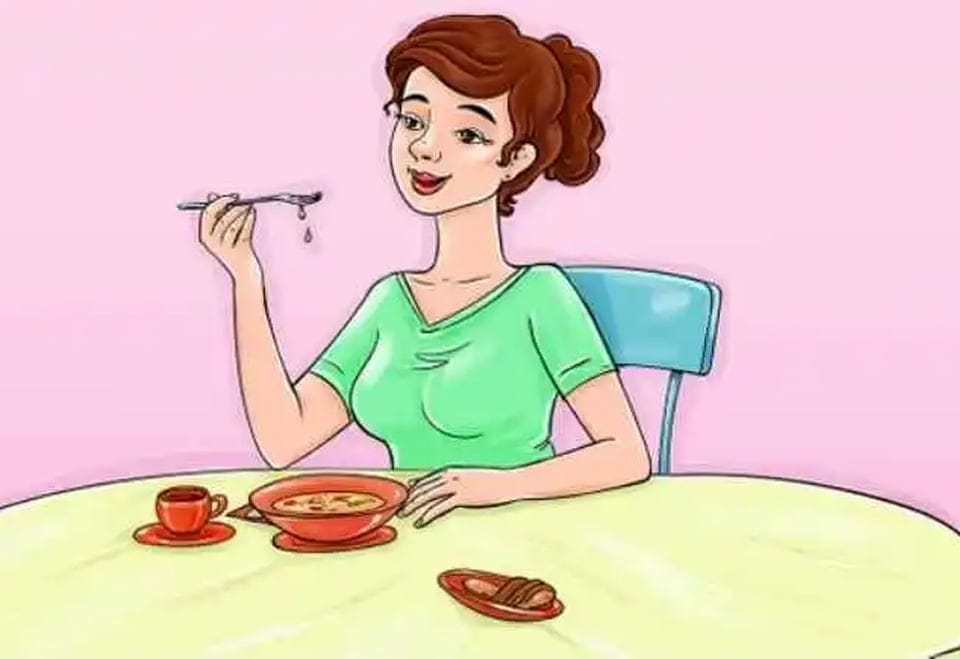 Pred vami je slika ženske, ki mirno večerja. Na prvi pogled se morda zdi povsem običajna scena, a ko se boste poglobili v podrobnosti, boste opazili, da nekaj ni čisto v redu. Vaša naloga je, da natančno preučite sliko in ugotovite, kaj je narobe.