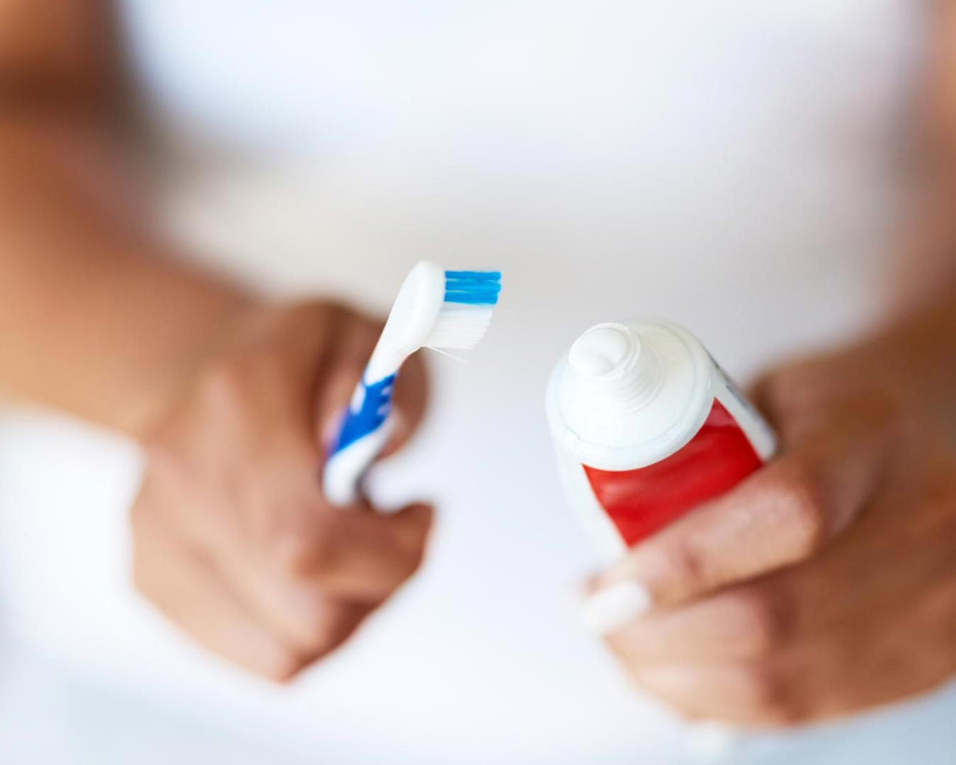 - Zobotrebec ali prst pomočite v malo bele zobne paste.