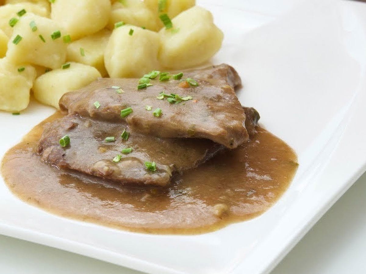 Mehki goveji zrezki, ki se kar stopijo v ustih, so zvezda tega recepta. Zraven se odlično priležejo domači njoki.